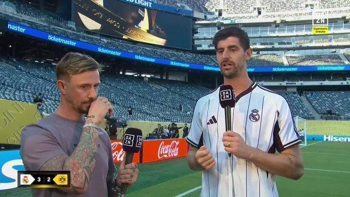 直播吧7月6日讯 皇马3-2击败多特,有惊无险地挺进世俱杯4强!赛后,库尔图瓦在场边接受了DAZN采访。