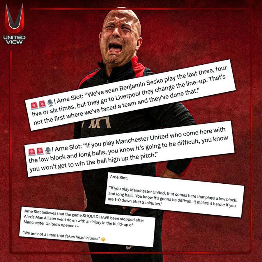 这场比赛让利物浦惨遭四连败,斯洛特也遇到了下课危机。他的球队开场一分多钟就丢掉一球,在曼联进球前,麦卡利斯特后撤与姆贝莫争抢头球时,被跃起头槌解围的队友范迪克意外肘击后脑勺。